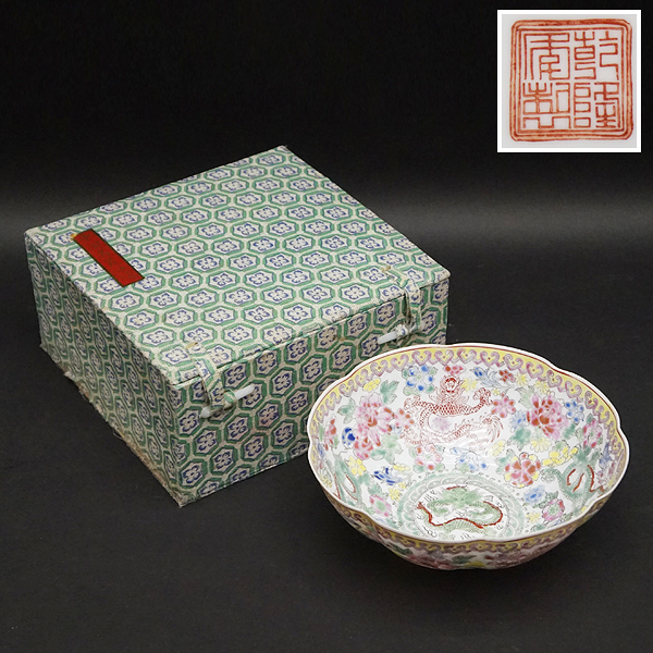 - 中国美術 中国古玩 色絵磁器 乾隆年製銘 景徳鎮 蝶龍図文 薄胎 鉢 煎茶器 茶器 唐物 陶器 陶製 陶磁 時代 骨董 古美術品