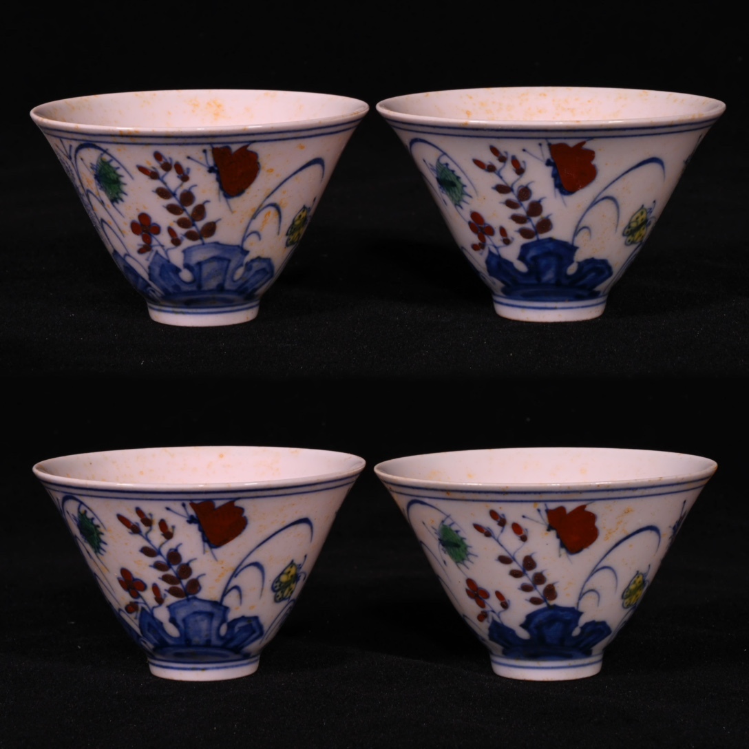 - 旧蔵 明代 成化 斗彩 三秋杯 古陶瓷品 陶藝 古擺件 古置物 中国古玩 骨董品 時代物 稀少唐物