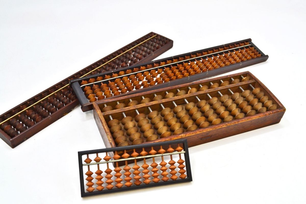 - (834M 1113R3) 1円~そろばん 4点セット 算盤 27桁5玉 13桁5玉 昭和レトロ 木製