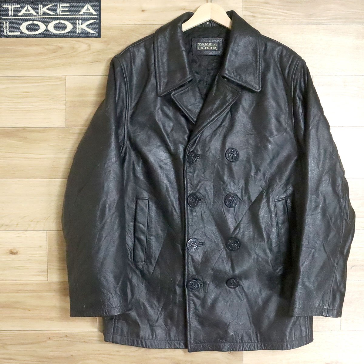 > \6O/D10.1-3 TAKE A LOOK レザーカーコート 本革 ダブルブレスト 革コート 皮コート レザーコート ハーフコート メンズ