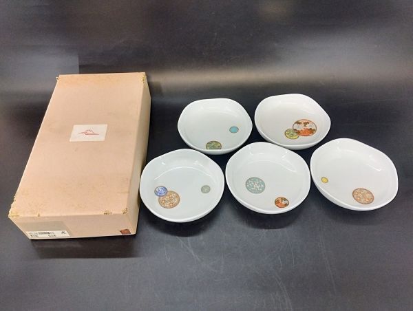 - サ/ 深川製磁 寿赤絵 絵変わり 取皿揃 5枚セット 小皿 小鉢 箱付き /HY-1279