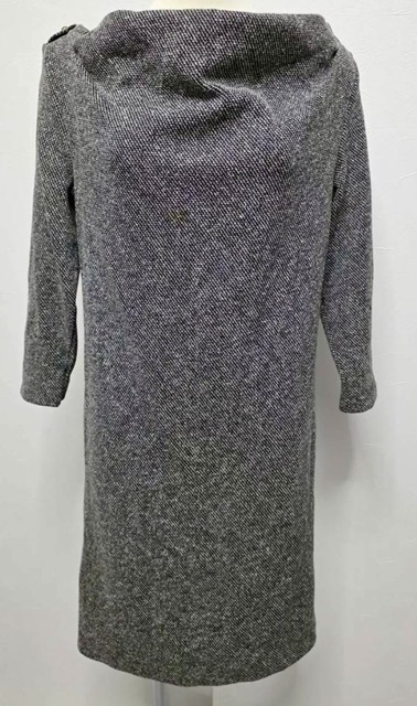 - Mサイズ NATURAL BEAUTY BASIC 七分袖 ワンピース ドレープネック ストレッチ ツイード風 黒白 秋冬