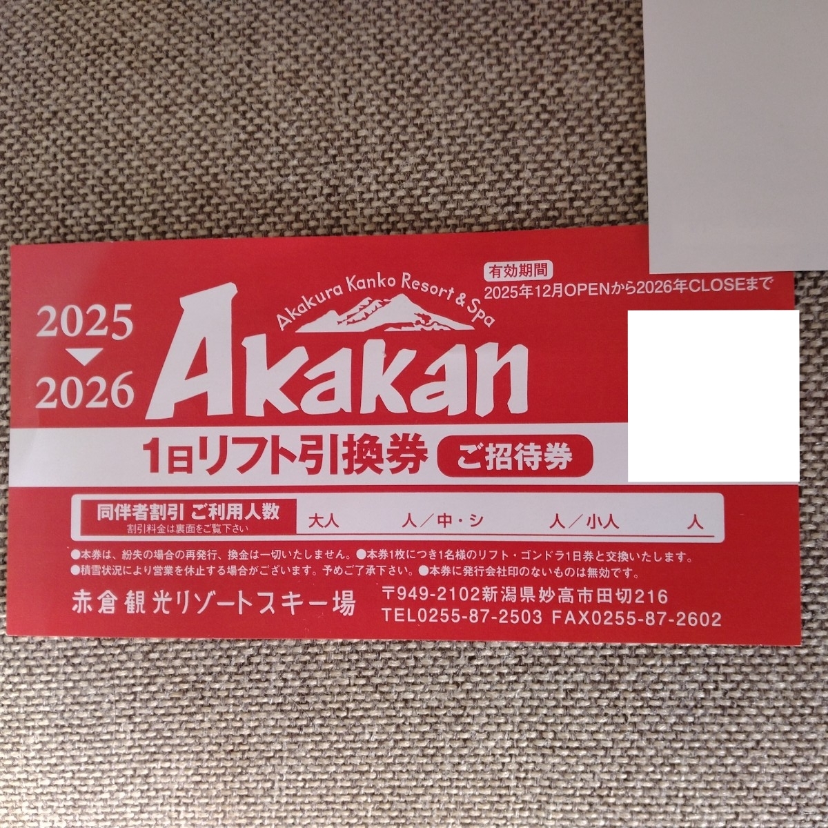 - 赤倉観光リゾートスキー場 1日券 リフト券