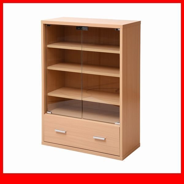 - キャビネット★6BOX 引き出し付ガラスキャビネット/リビング収納 木製キャビネット 飾り棚 本棚 ラック チェスト/ナチュラル/fra-050/a3