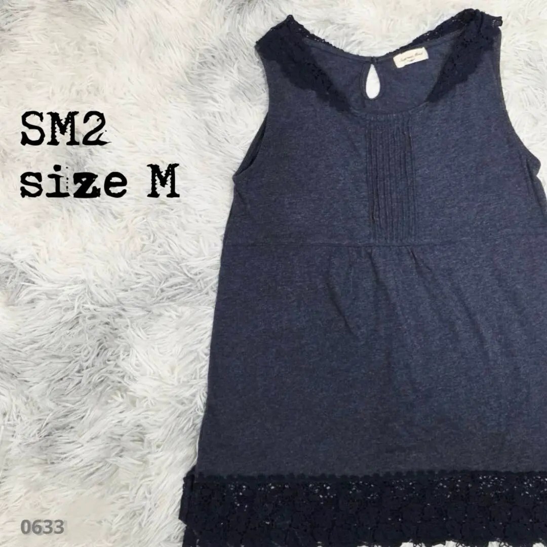 - SM2 サマンサモスモス レース切替 ノースリーブ ブラウス ネイビー 0633