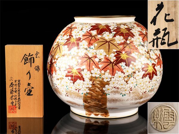 【流】三代 斉藤雲楽 雲錦大花瓶 飾り壷 幅27cm 立札付 共箱 PB211拍卖