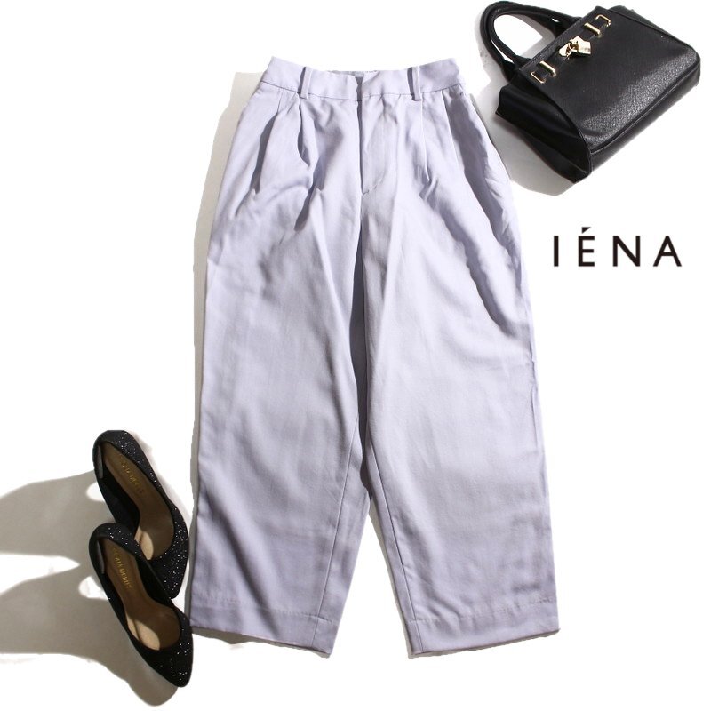 > 美品 イエナ IENA やさしい 淡色 ウール100% タック テーパードパンツ 7号 36 グレー ラベンダー オフィス 通勤 ママ 楽ちん スーツ 綺麗め