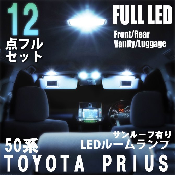 > トヨタ プリウス 50系 ZVW50 ZVW51 LED ルームランプ 12点フルセット サンルーフ有 車内灯 室内灯 車 照明 内装 ホワイト 白 送料無料