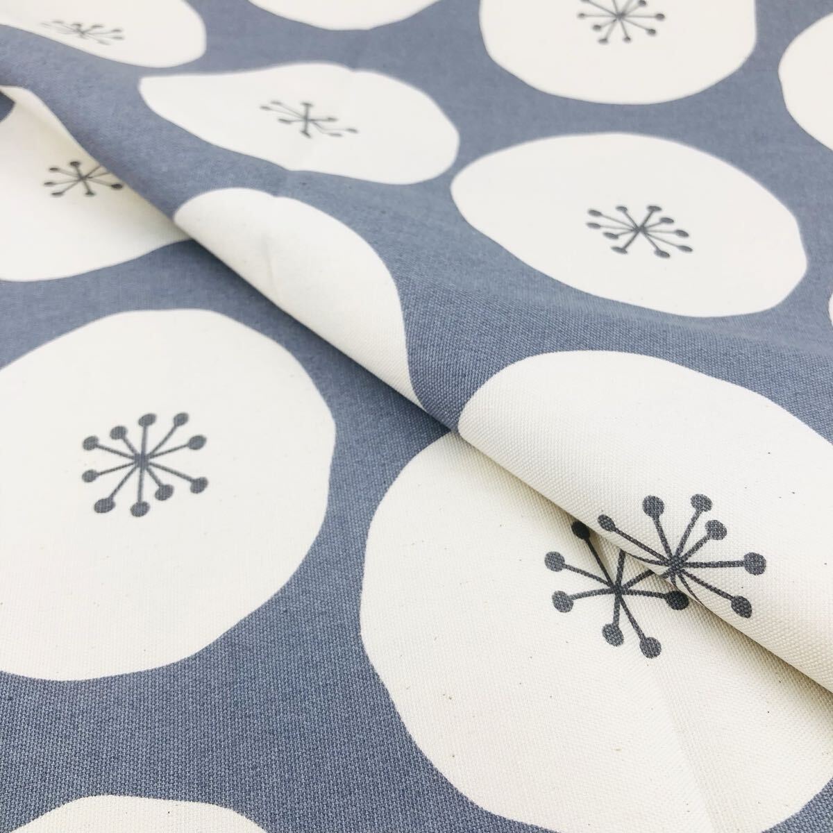 - 1m まるいお花 オックス コットン 生地 はぎれ 日本製 グレー×生成り 110×100