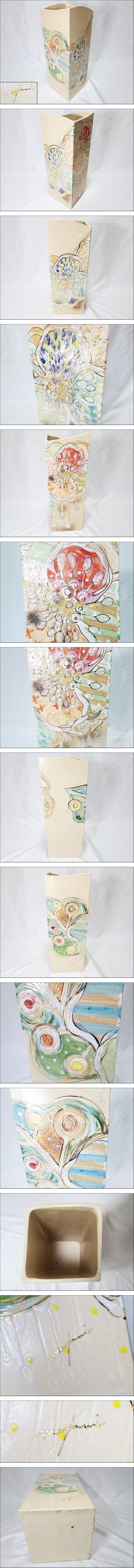 - 【a06】 中村真由美 作 傘立て 自在の花 多色釉薬 花モチーフ 現代陶芸 人気作家 本物保証