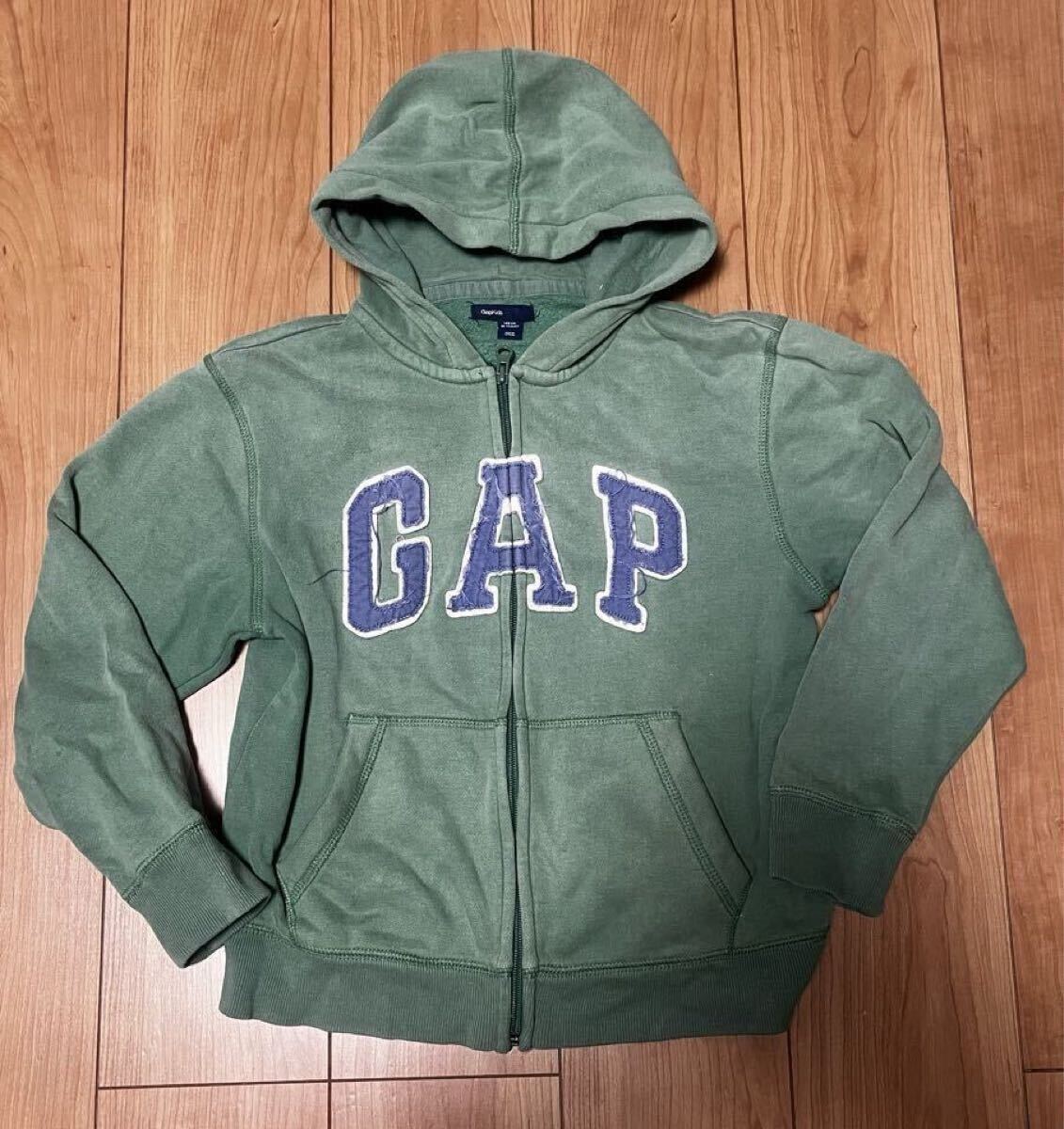 > 送料無料 GAP パーカー 140 厚手パーカー ジップパーカー グリーン おまけ長袖Tシャツ付き