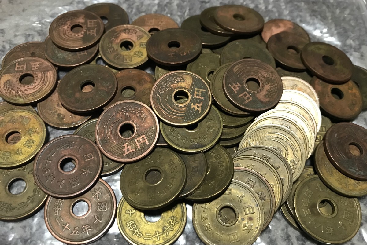 - 昭和20年代 昭和30年代 昭和40年代 5円硬貨 72枚セット 特年 5円玉 穴銭 アンティーク