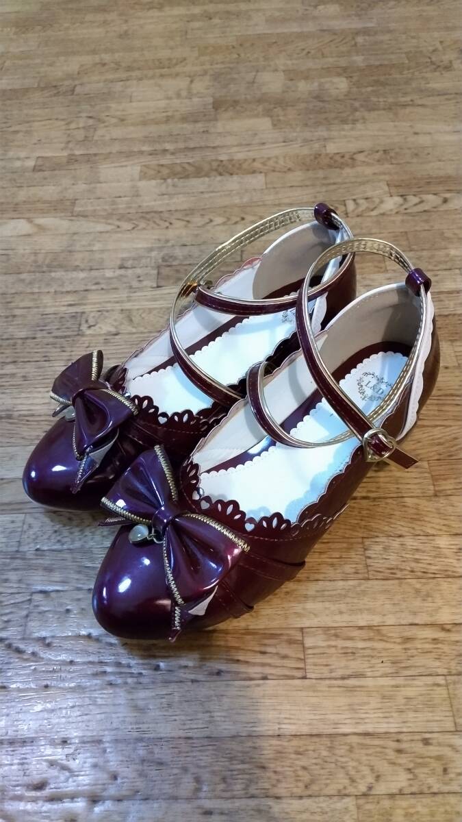 - No.2799_海外ロリィタ_未使用ボルドーエナメルリボンロリィタパンプス