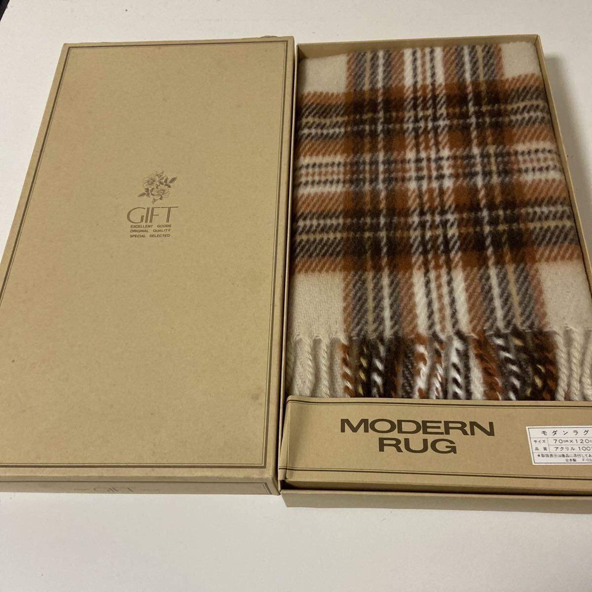 > ★1円スタート★モダンラグ アクリル100% 茶系チェック柄 3-4501