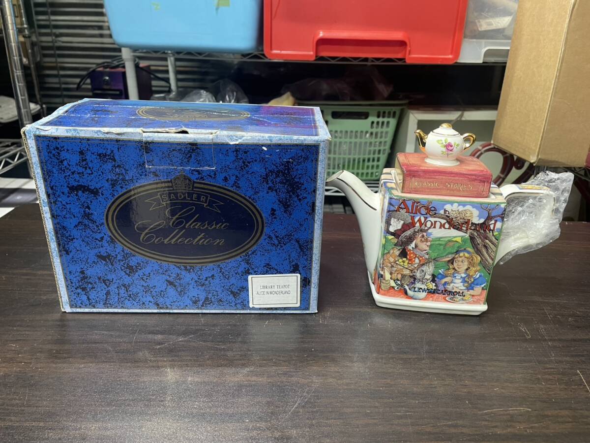 > 【H122】SADLER サドラー 英国製 アリス・イン・ワンダーランドイラスト入り ティーポット 陶器製 茶器 ルイス・キャロル原作イラスト