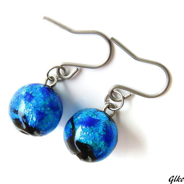 - 【両耳用でコーディネートに統一感が出る】 ホタルガラスピアス 琉球ガラス チタンフック ハンドメイド ギフト プレゼント 沖縄土産