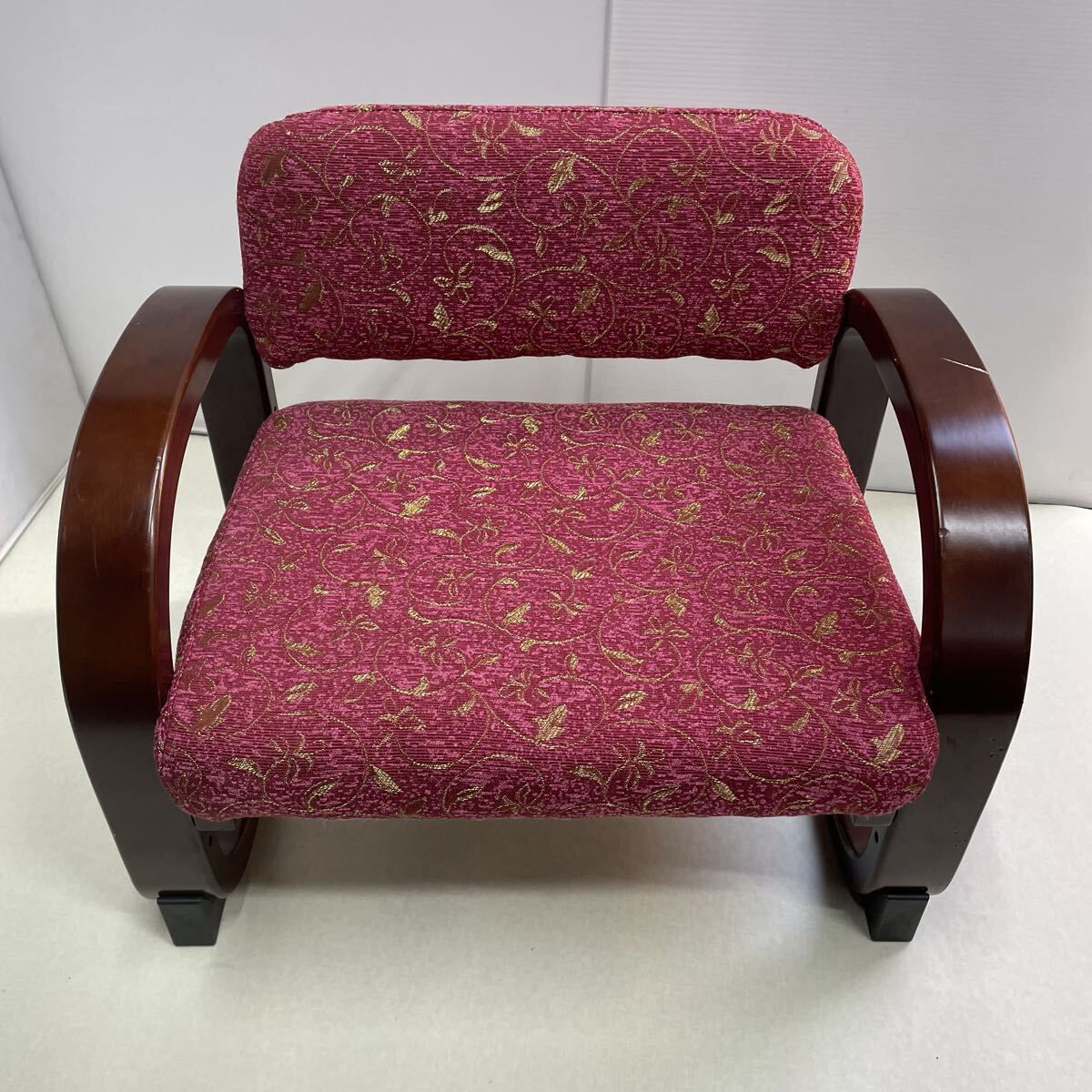 > BS■ ゴジット 思いやり座敷椅子 木製 エンジ 3段階調整付 肘掛け付 1人掛け いす 椅子 座椅子 チェア 高座椅子 家具 現状品 中古