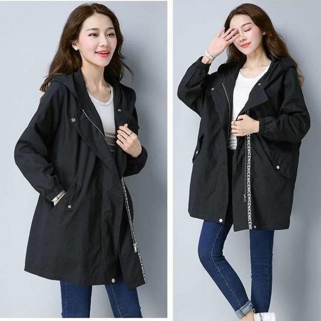 > トレンチコート レディース スプリングコート ライトアウター 大きいサイズ 春 秋 春服 韓国風 アウター ブラック 2XL