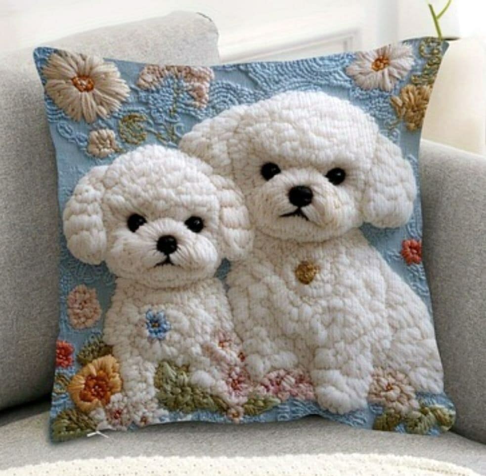 > クッションカバートイプードル マルチーズ ビジョン 刺繍風 犬 ペット 片面プリント インテリア 雑貨 クリスマス プレゼント ギフト