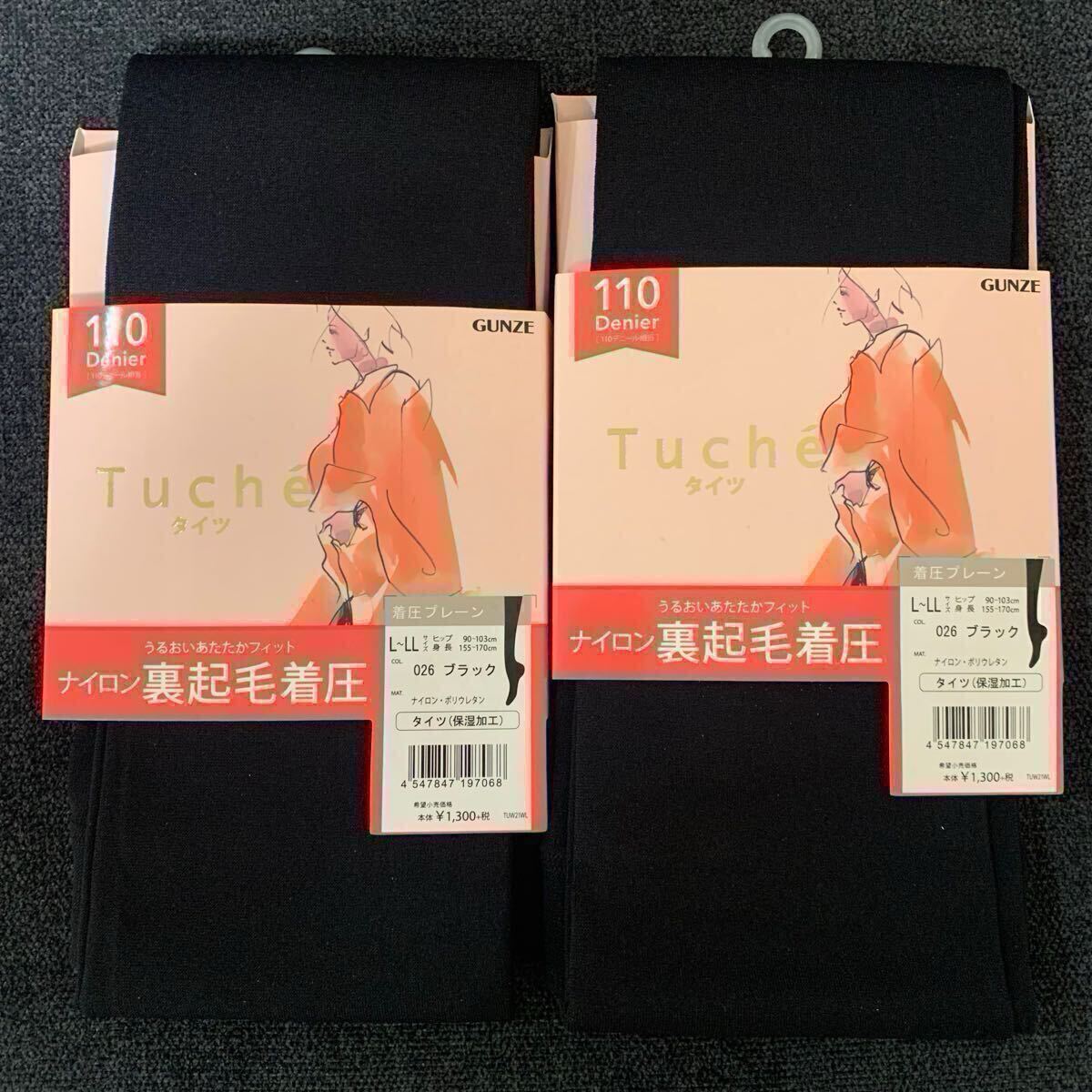 - 新品 2足セット 定価2,860円 グンゼ Tuche 110デニール 裏起毛 着圧タイツ L-LLブラック