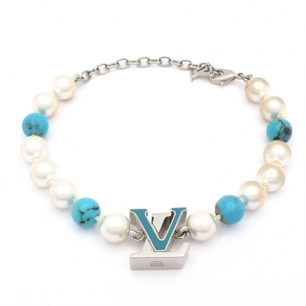 > ルイヴィトン LOUIS VUITTON ブレスレット M1154A ターコイズロデオ LVイニシャル ブルー×白×シルバー VA2244 美品 アクセサリー(腕)
