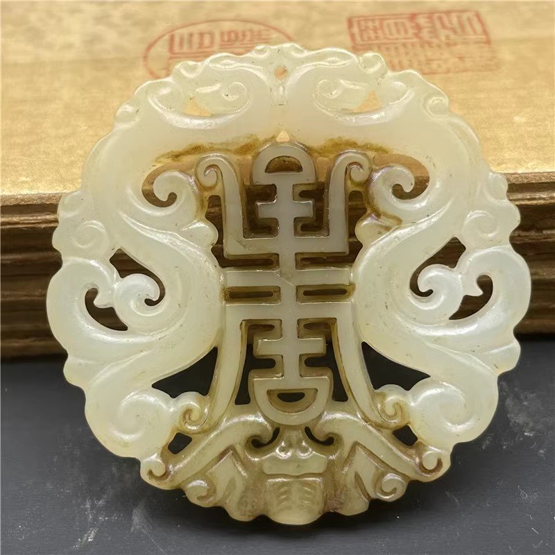 - 送料無料!珍品 旧蔵 岫玉 玉細工 龍紋図 玉璧ブランド ペンダント 観賞 置物 fgcq088
