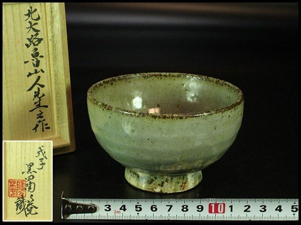 > 【金閣】北大路魯山人作 粉引茶碗 黒田陶々庵織 保証 美品 旧家蔵出 送料無料(YC575)