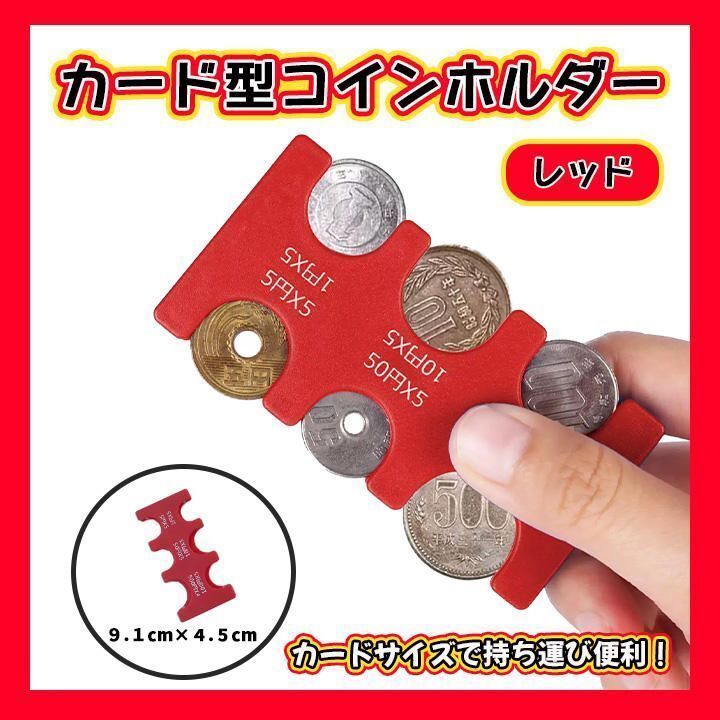 - コインホルダー 赤 レッド 財布 小銭 カード型 収納 コインケース
