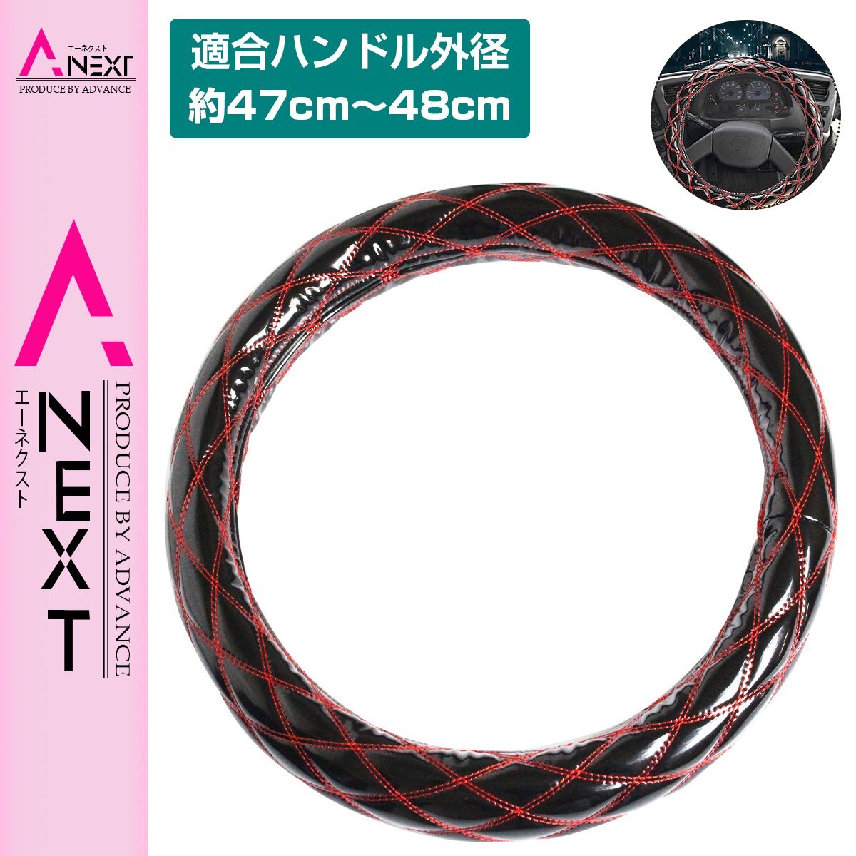 - 極太 太巻き エナメル ダブルステッチ ダイヤカット トラック ハンドルカバー 艶ブラック×レッド XLサイズ ふそう 大型 スーパーグレート