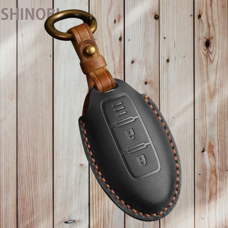 - 日産/三菱 ekクロスEV 適合 本革製 スマート キーケース 新型セレナ 新型ノート リーフ ルークス KICKS エルグランド レザー キーホルダー