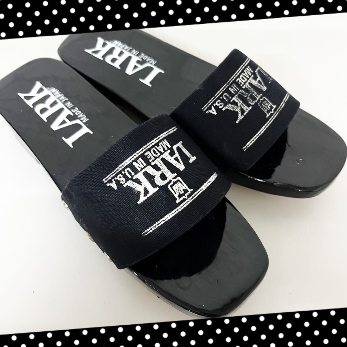 - ★M■ フィリップ・モリス社 LARK ラーク 木製 下駄サンダル 黒 日本製 当時物 レトロ 庭履き タバコメーカー レトロ雑貨 サボ 煙草