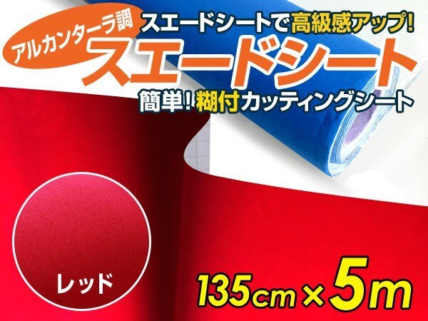 - 【大判】アルカンターラ調 スエードシート レッド 135cm×5m カッティングシート スエード調 シート