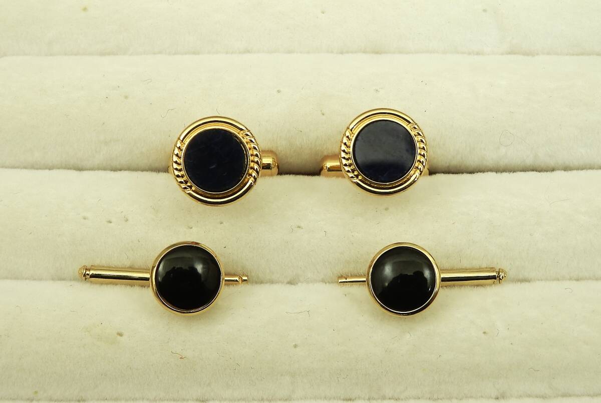 - ラピスラズリとオニキスのカフス 2種 約11.12g 現状品 売り切り