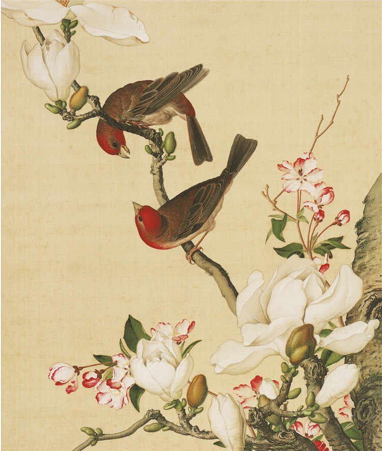 - 送料無料!清 郎世寧 花鳥図 花鳥画 清代画院清代名家の名作 掛画 絹本 絹布画芯 中堂画 装飾画 中国美術