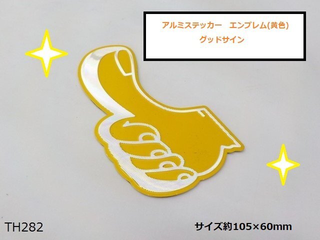 - (TH)★☆GOOD(2)アルミステッカー エンブレム 黄色(車 バイク)グッドサイン★