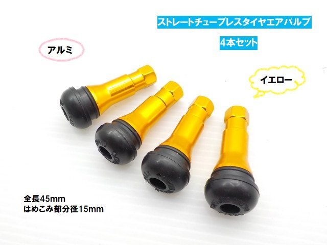 - KS8★☆ストレートチューブレスタイヤエアバルブ(アルミ)4本セット イエロー(車 ホイール タイヤ)