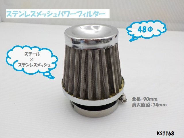 > KS2★☆ステンレスメッシュ パワーフィルター(48Φ)(ホーク バリオス ハーレー マグナ GB350 FTR DAX シャリー ディオ)