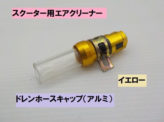 > VT★☆(34)汎用スクーター用エアクリーナー ドレンホースキャップ(アルミ)イエロー(マグザム フォルツァ ディオ レッツ ジョグ)
