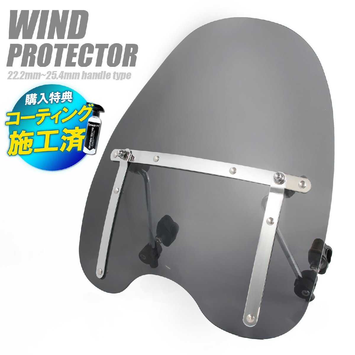> 汎用 大型 スクリーン ネイキッド ストリート プロテクター 22.2 インチ ドラッグバー エイプバー Zバー スモーク エリミネーター バルカン