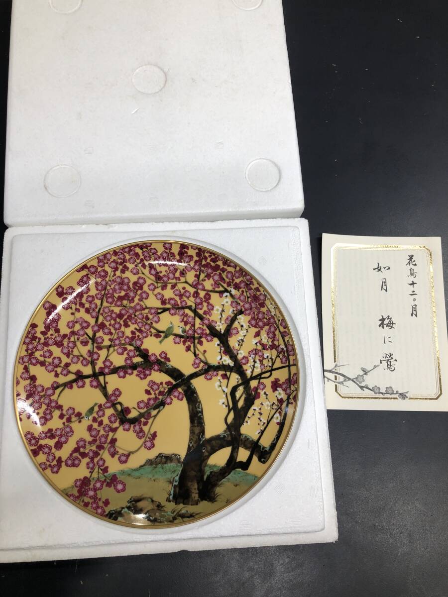 > HB5385 フランクリン ポーセリン 野畑直子 花鳥十二ヶ月の内『如月』「梅に鶯」飾皿 Franklin Porcelain 絵皿 1982年 日本製
