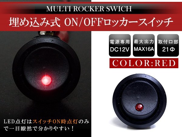 > 『1個』汎用 丸型 ON/OFFスイッチ 21mm 21φ ロッカースイッチ 12V レッド 赤 船 キャンピングカー 埋め込み 増設スイッチ 電源 丸ボタン