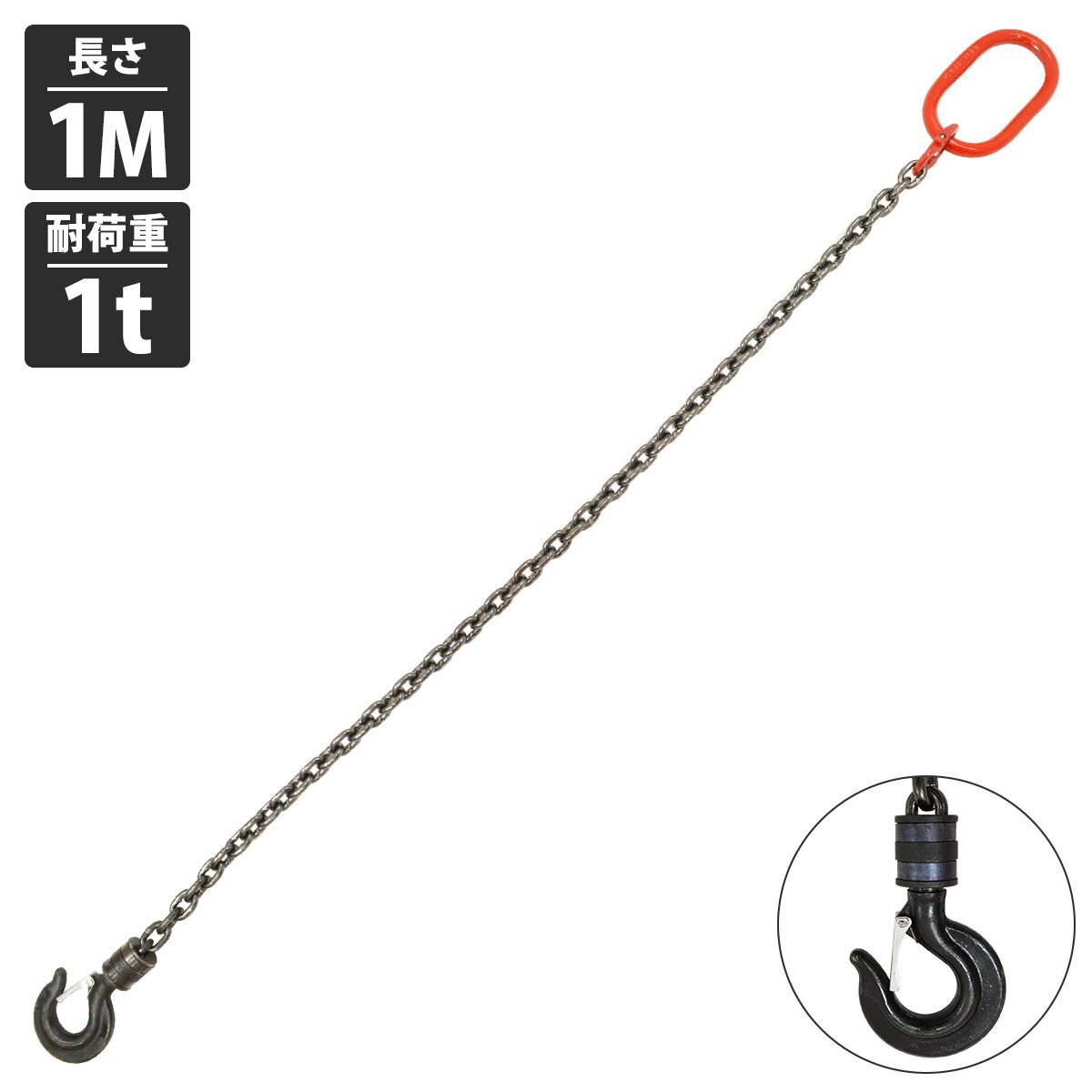 > [ 1t 1M ]1本吊り チェーンスリング 吊り スリング チェーン 回転フックタイプ リンツ付き 径6mm 長さ 1m 耐荷重 1t 1000kg