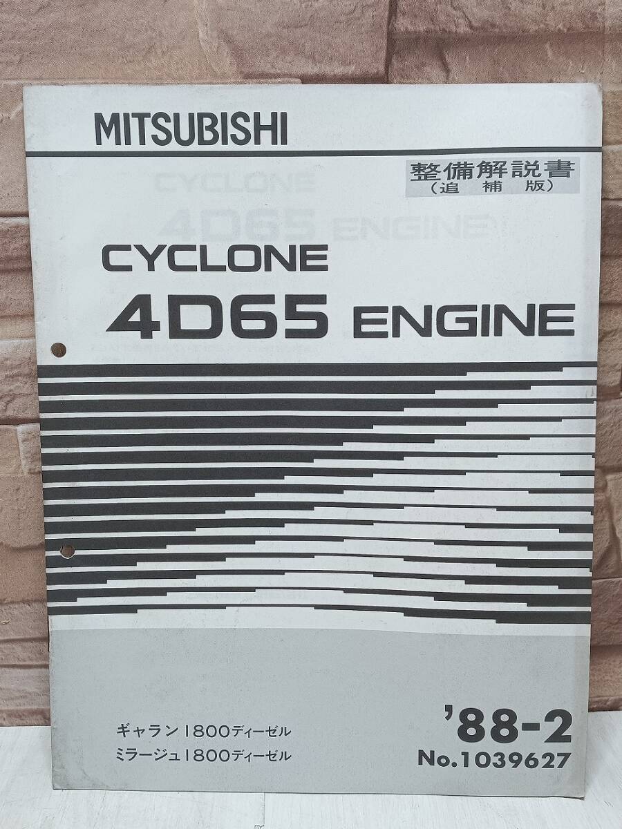 > 1988年2月発行 4D65 ギャラン ミラージュ 1800ディーゼル 整備解説書 追補版 ’88-2 No.1039627 CYCLONE ENGINE エンジン MITSUBISHI 三菱