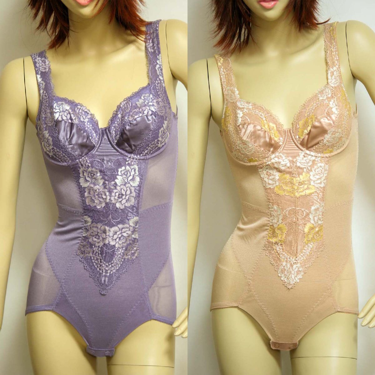 - 送料無料◆超お得2色組◆薄軽メッシュ◆通気性抜群◆補正下着◆サイドパネル◆バスト寄せ上げボディスーツ(C/70M/ラベンダー&ベージュ)