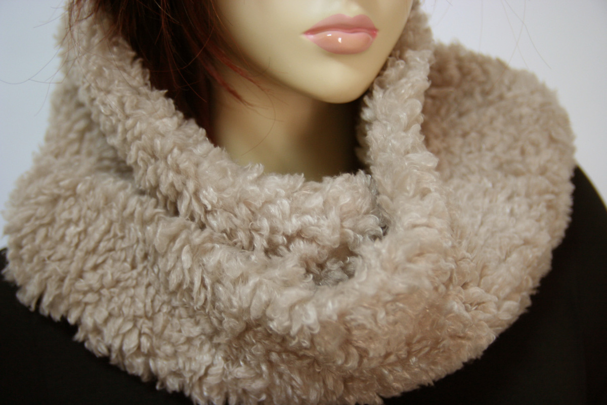 - 送料無料◆超お得2枚組◆あったかシープタッチ◆ふわふわ&もこもこ◆プードルボアスヌード(ミスティベージュ)ネックウォーマー◆首元お洒落