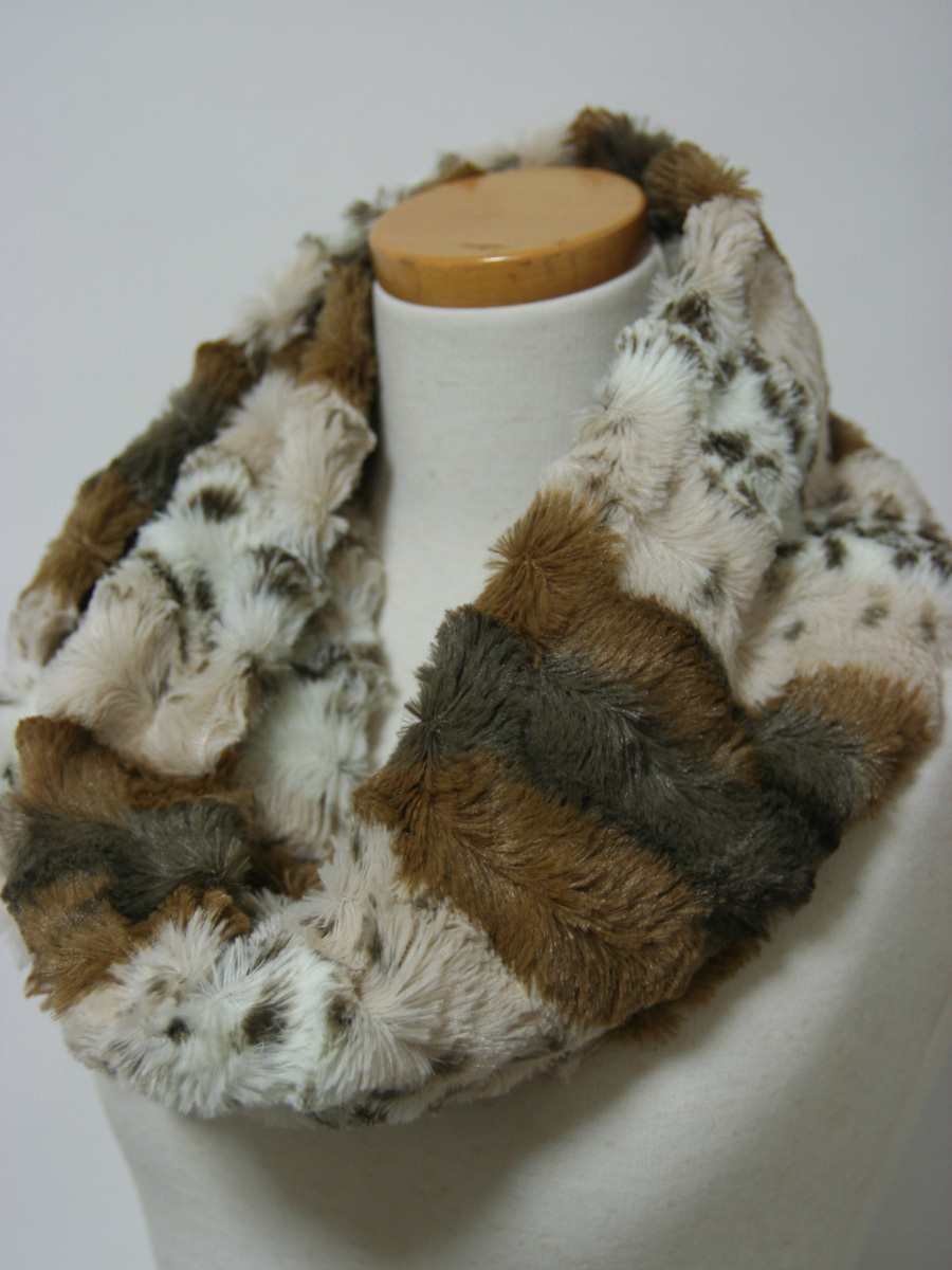 - 送料無料◆ミンクタッチ◆二重巻き◆グラデーション配色◆フェイクファー◆ヒョウ柄◆ロングスヌード(ブラウンー×ベージュ)3437