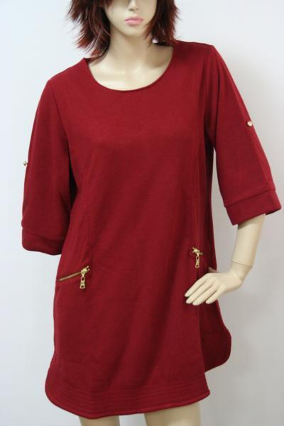- 送料無料◆francaise◆ベルーナ(BELLUNA)◆綿混素材◆鹿の子切り替◆チュニック(L/レッド)