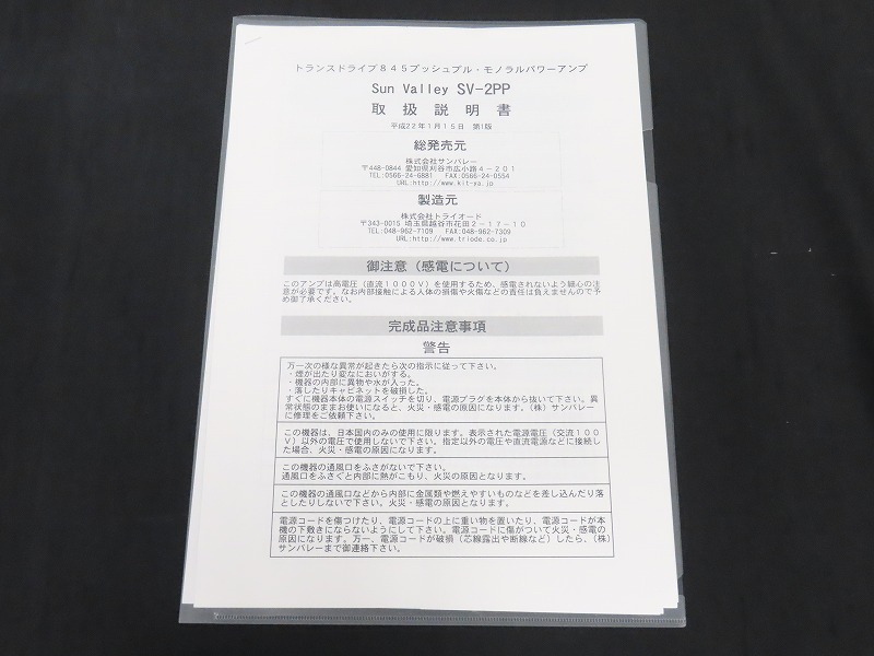 > ■□【良品】SUNVALLEY SV-2PP/300B 845 使用 真空管 モノラルパワーアンプペア サンバレー□■032294001-3□■