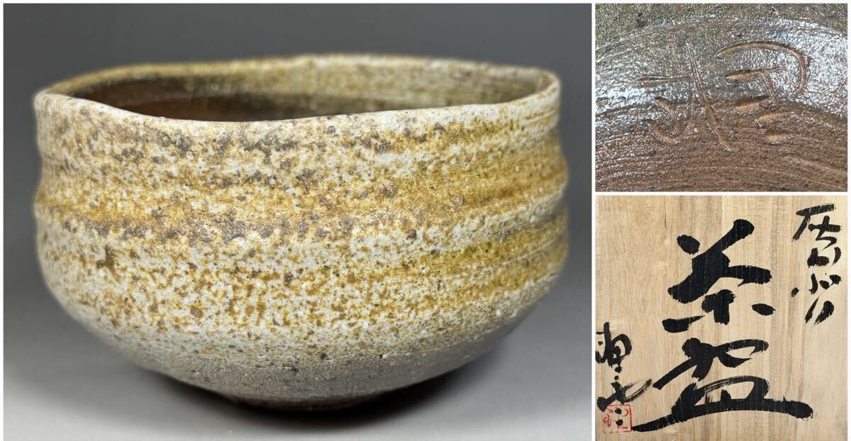 - #3 足利焼 朋隆窯 今井理桂 灰 茶碗 茶道具 共箱 栞 陶芸 陶磁器