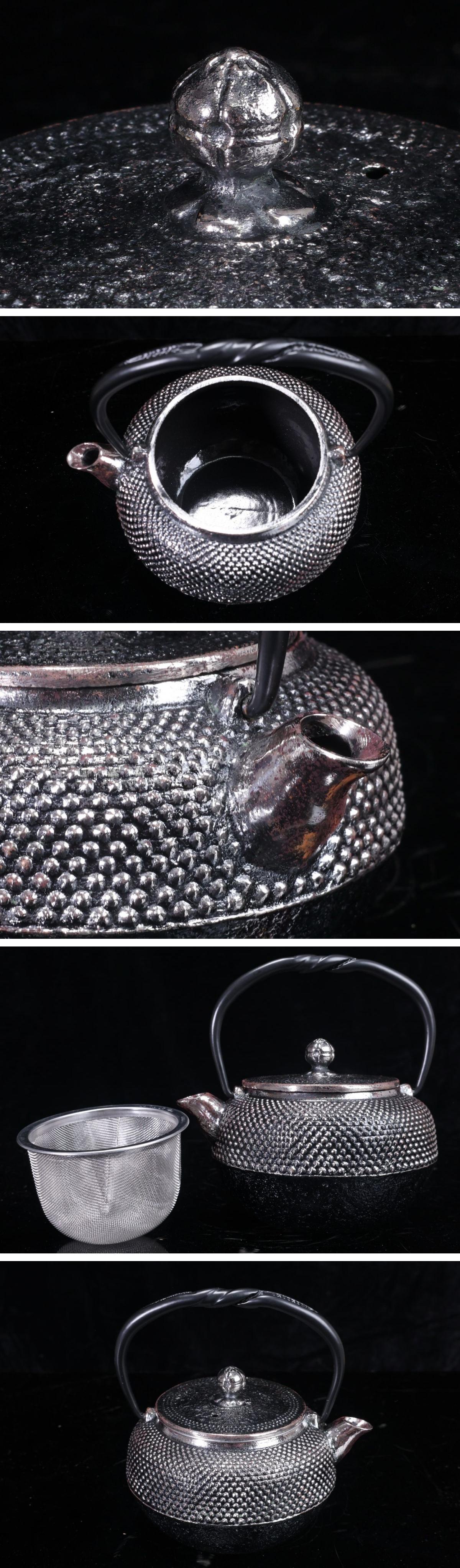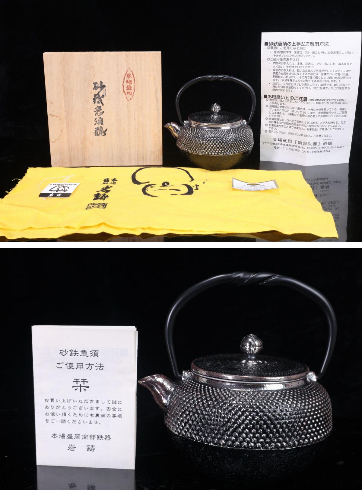 - 【珍品堂】1円から V60-V08 南部鉄器 本場盛岡 岩鋳 砂鉄 急須 在銘 刻印 鉄瓶 鉄壷 重632g 共箱 木箱 茶器 茶道具 時代物 骨董品 古美術